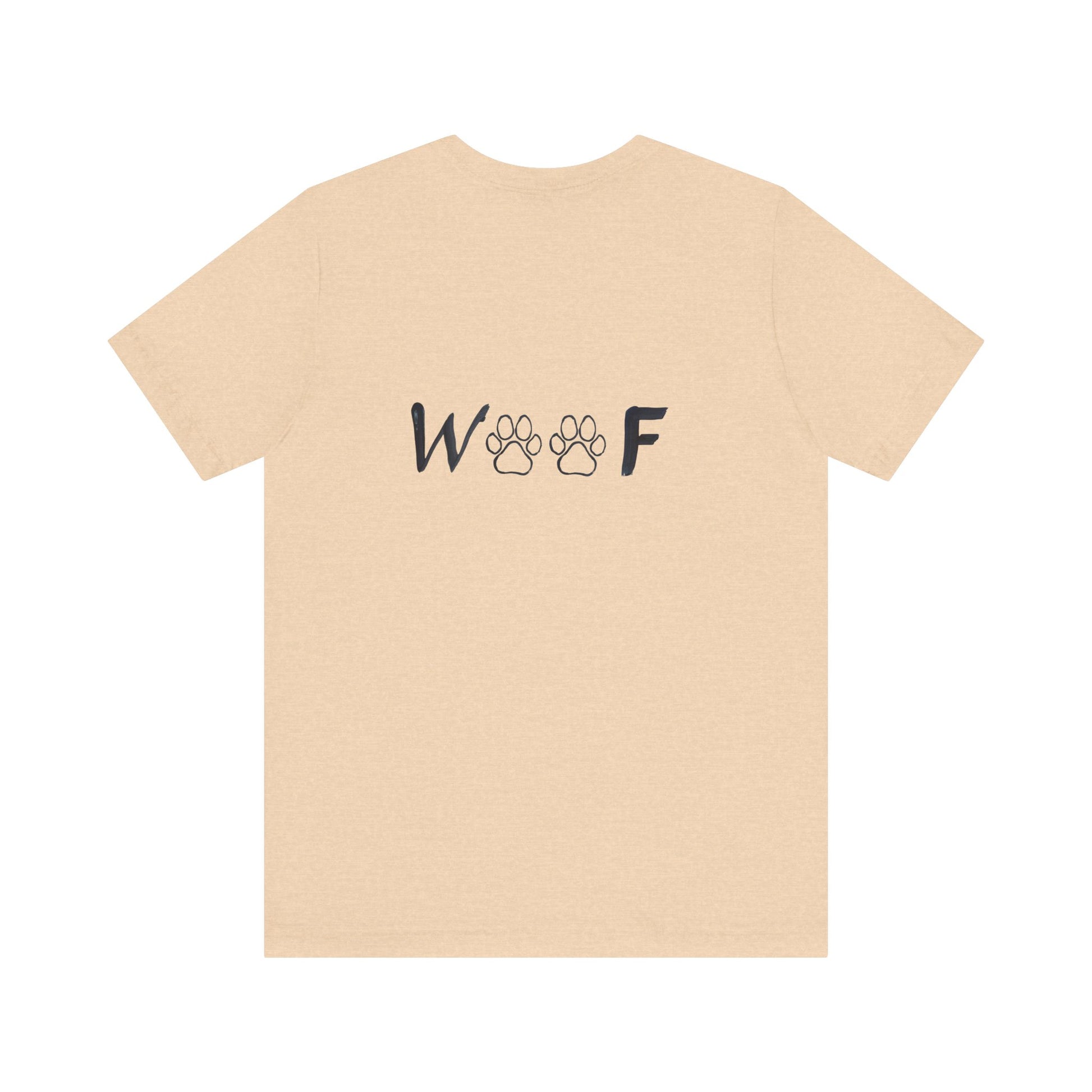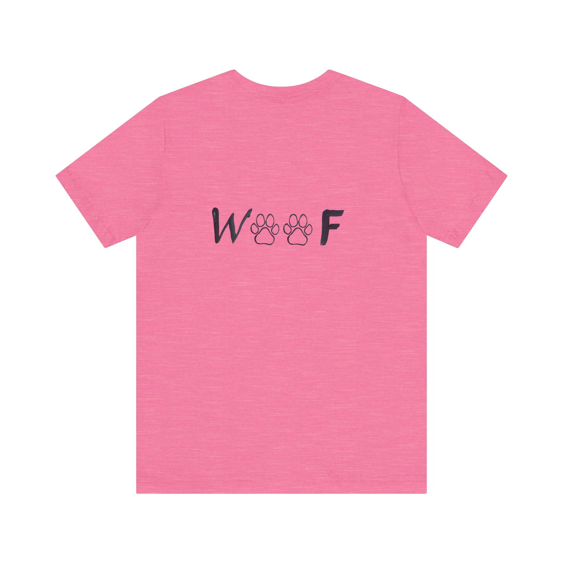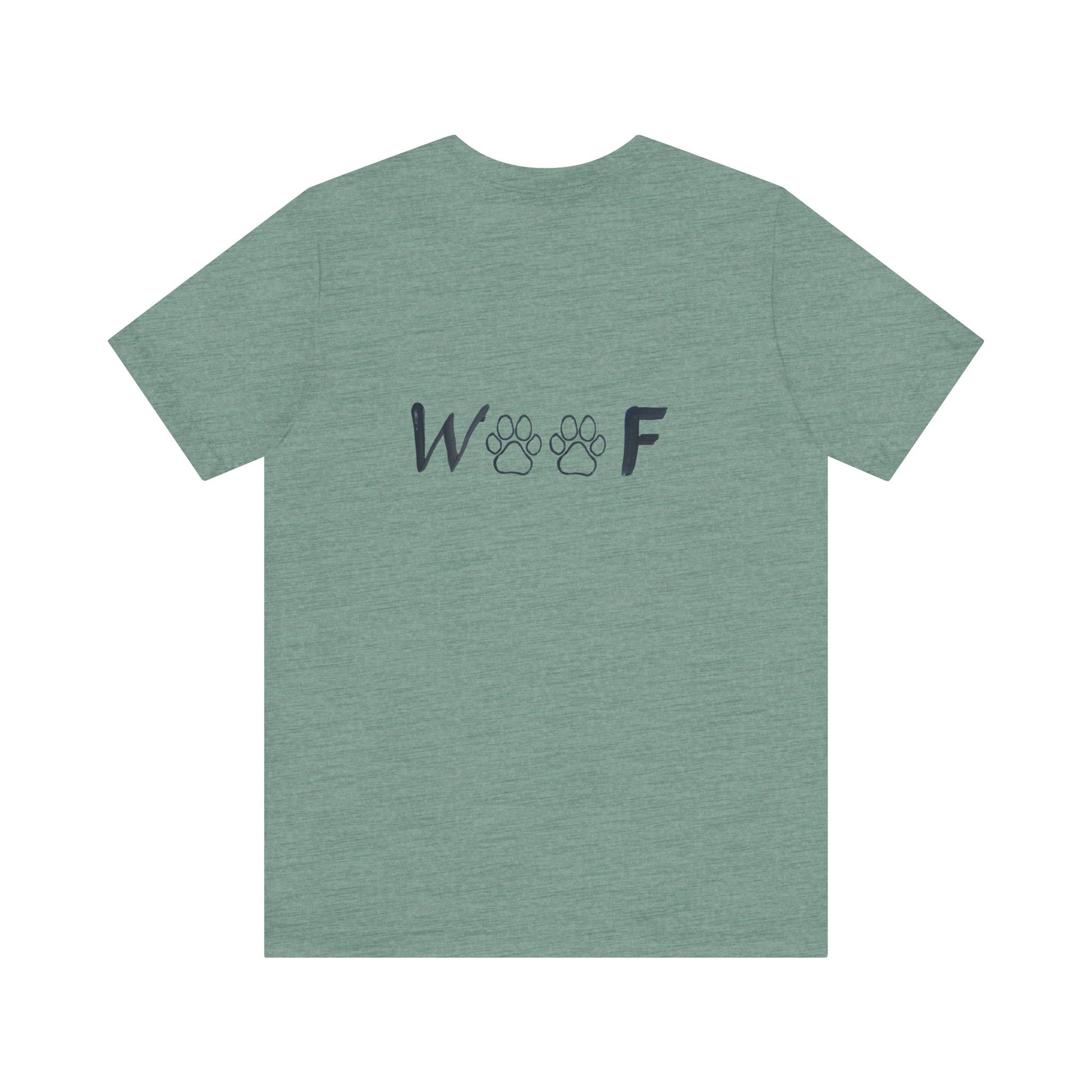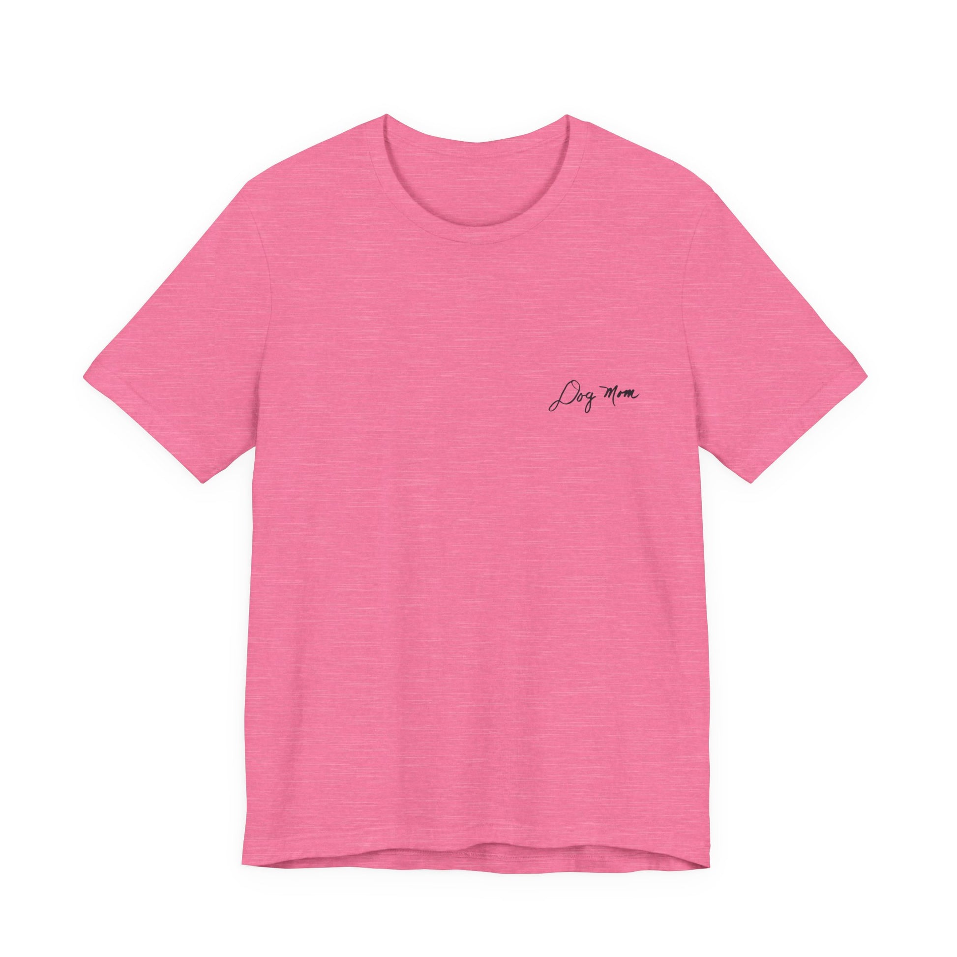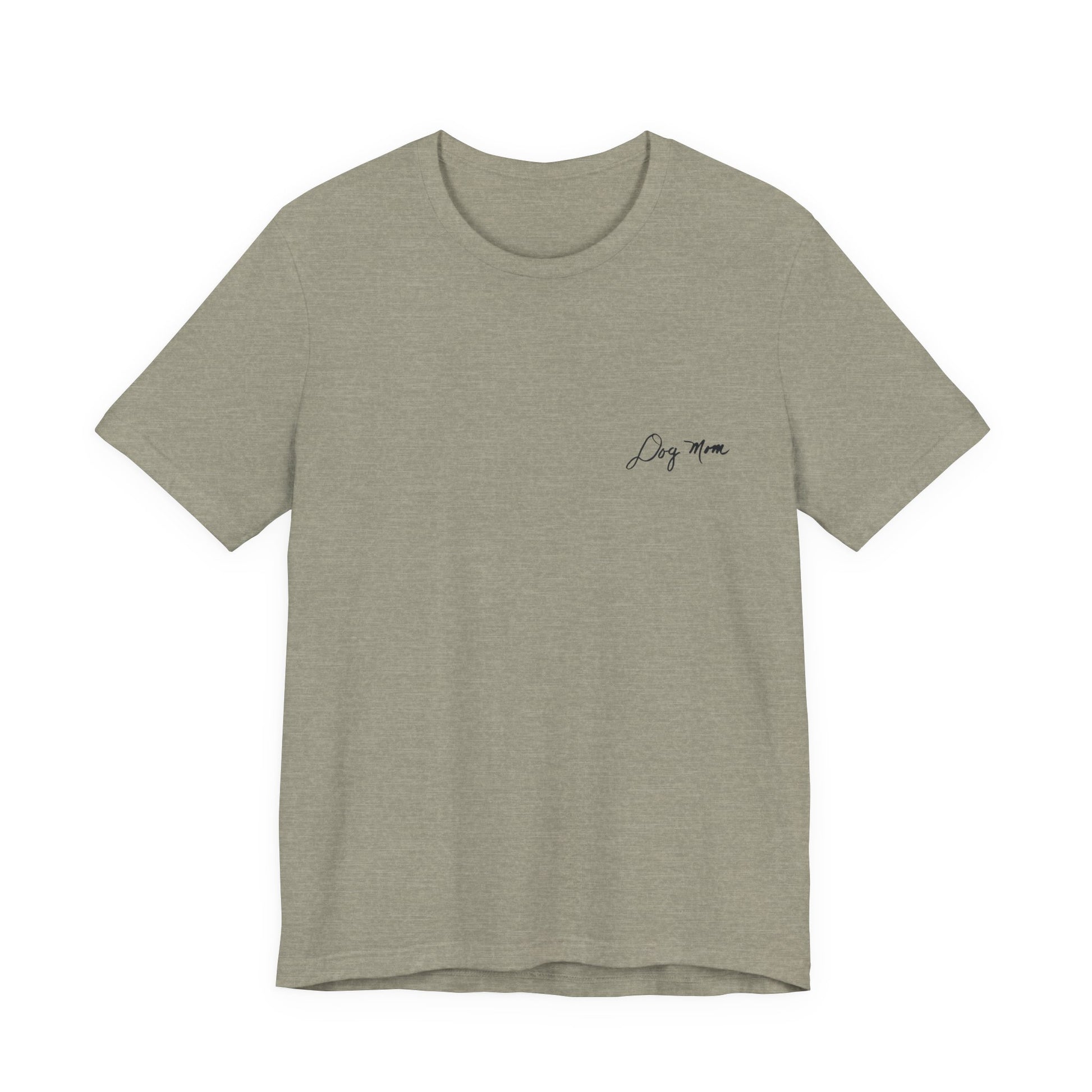 WOOF and Dog Mom was hand painted by Chewy's 96-year-old Grandma, giving off a charming and quirky vibe. This unisex jersey short sleeve tee is perfect for dog lovers and those who appreciate handmade designs. Ideal for casual wear and can be a great conversation starter. Relevant for dog lovers, pet owners, and those celebrating National Dog Day.