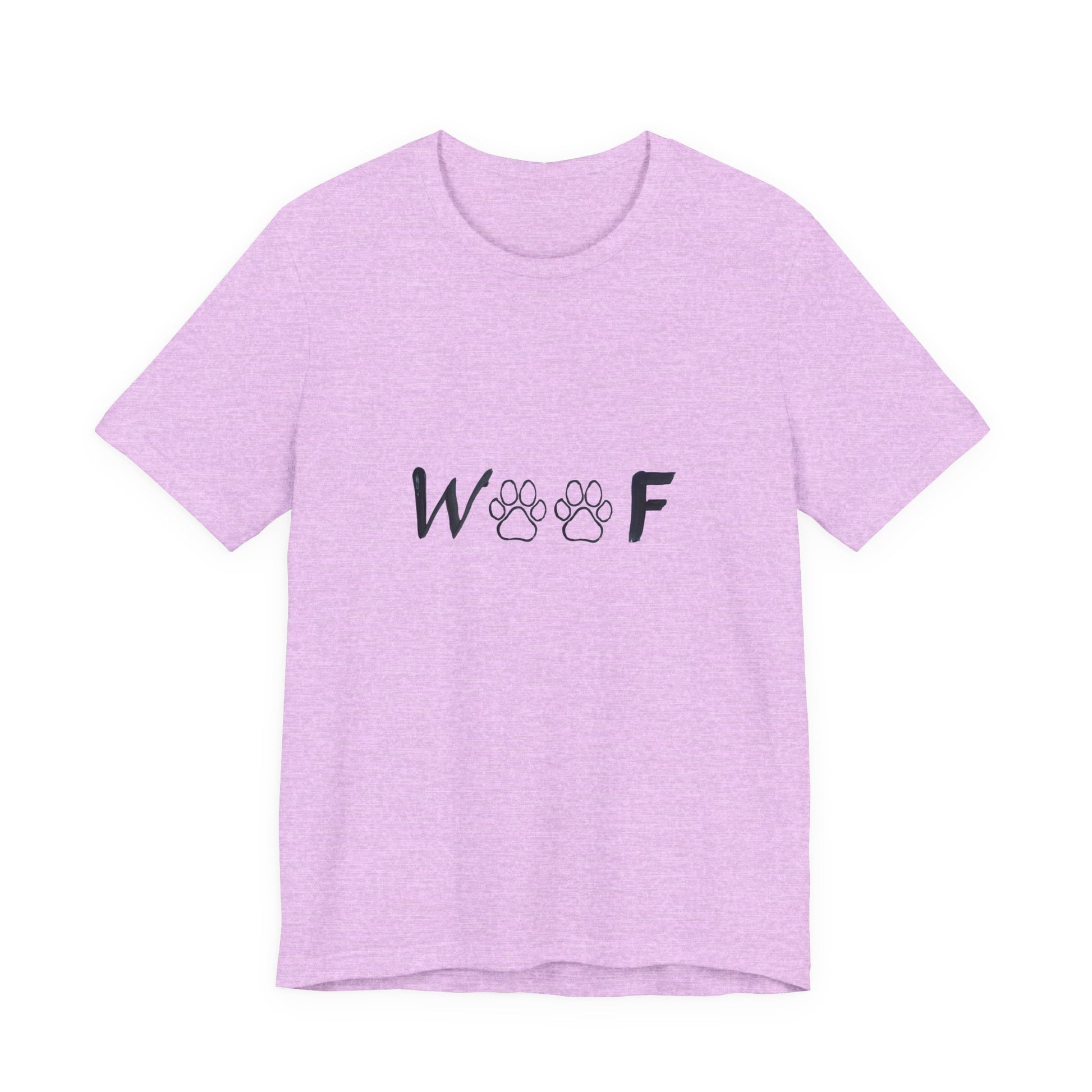 WOOF was hand painted by Chewy's 96-year-old Grandma, giving off a charming and quirky vibe. This unisex jersey short sleeve tee is perfect for dog lovers and those who appreciate handmade designs. Ideal for casual wear and can be a great conversation starter. Relevant for dog lovers, pet owners, and those celebrating National Dog Day.
