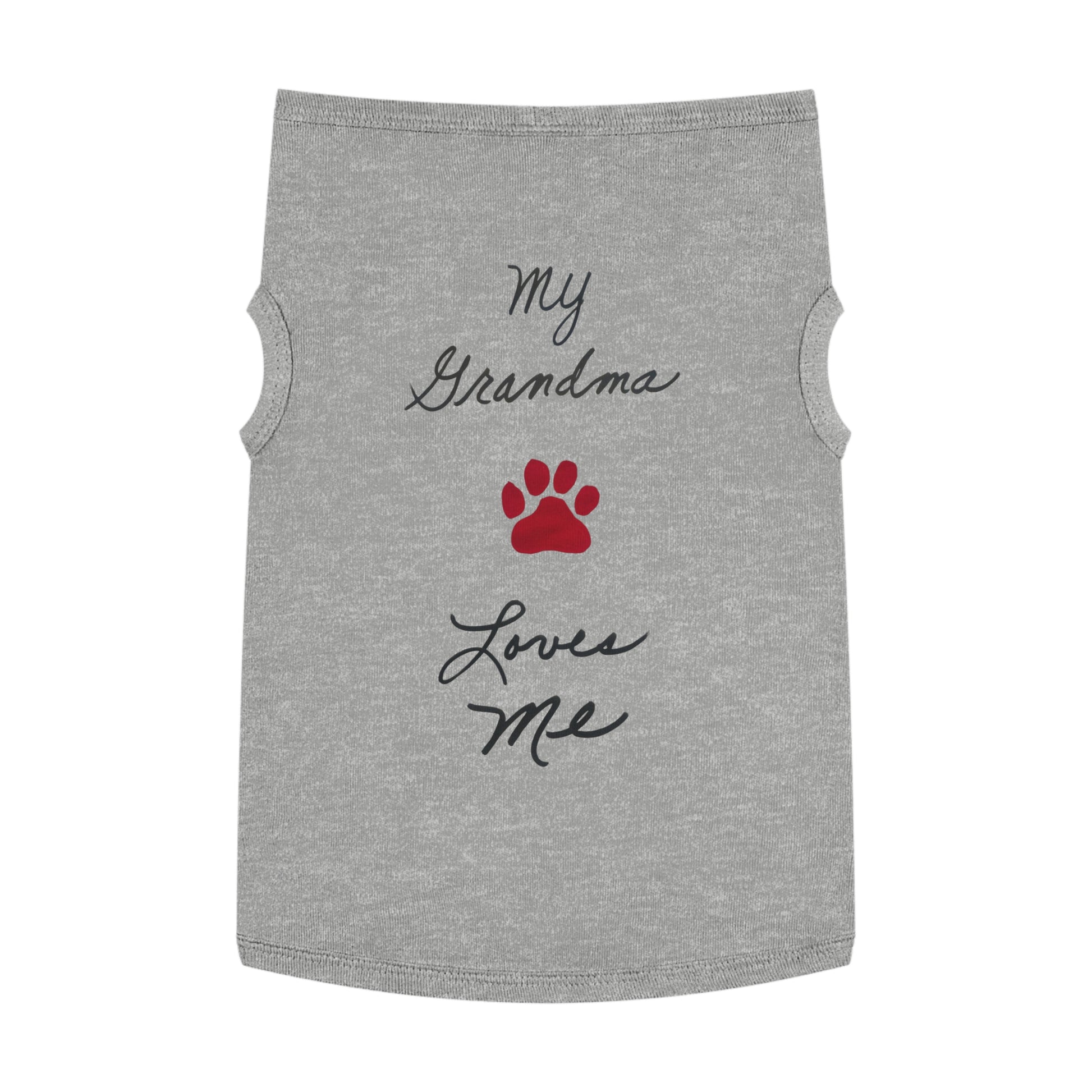 This isn’t just any pet tank—it’s a heartfelt blend of comfort, warmth, and a touch of family legacy. Designed to keep your furry friend stylish and snug, each tank features custom lettering in the real handwriting of a 96-year-old grandma, making it as meaningful as it is adorable.
