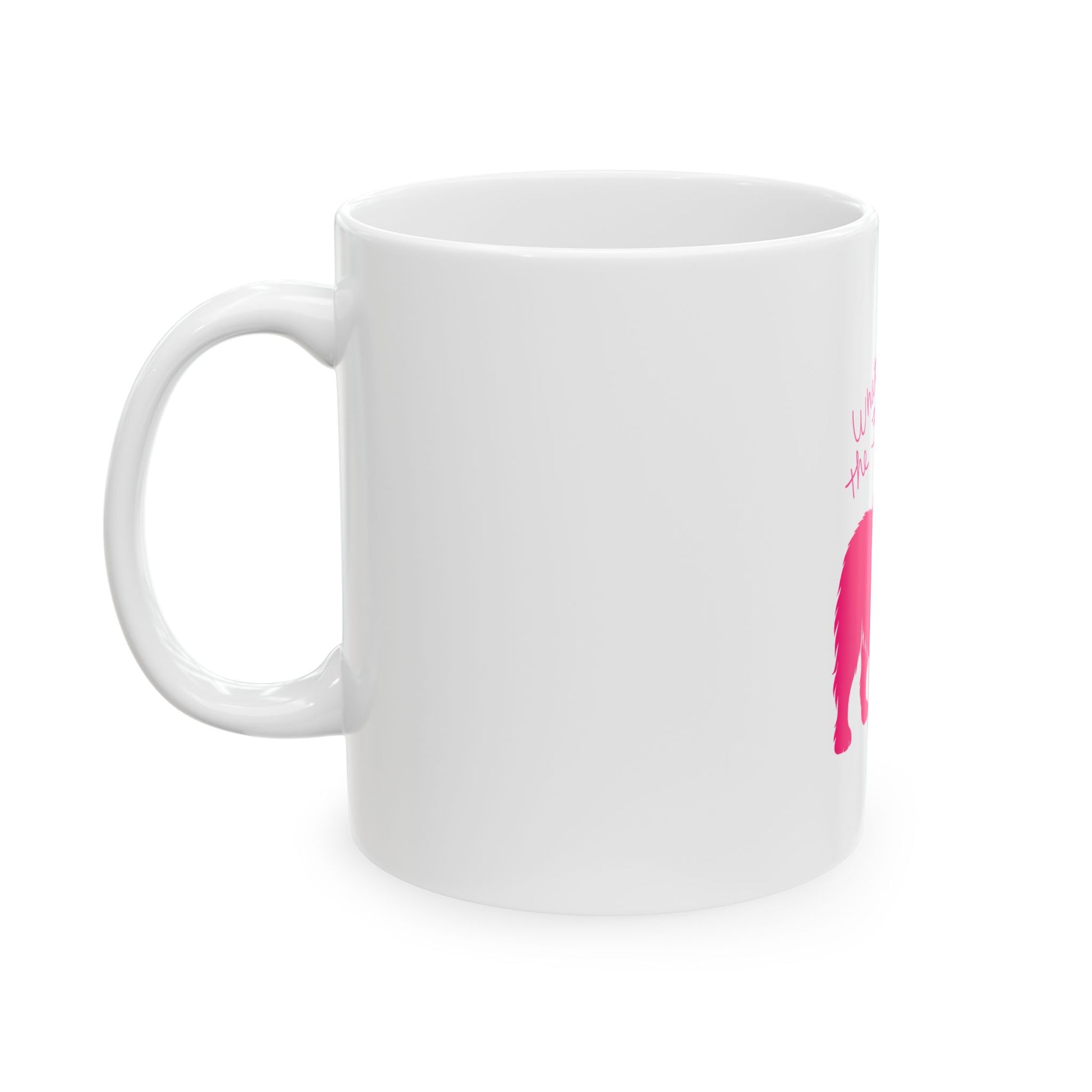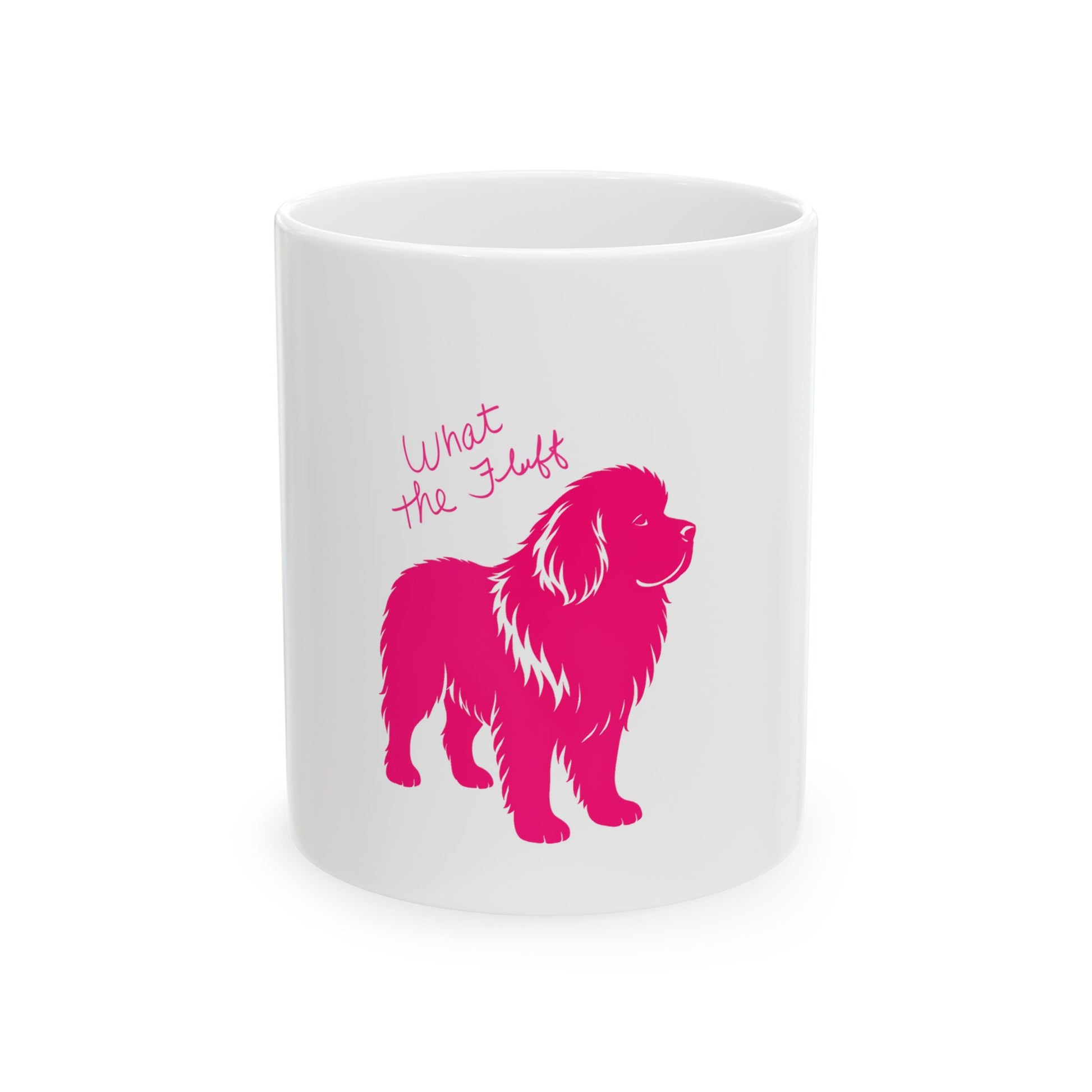 Brighten your mornings with this vibrant ceramic mug—featuring “What the Fluff” handwritten by Chewy the Newfoundland’s 95-year-old Grandma and a bold hot pink Newfie design that brings smiles with every sip. Whether you're fueling up for the day or winding down with tea, this mug blends charm, personality, and a touch of family love in every detail.
